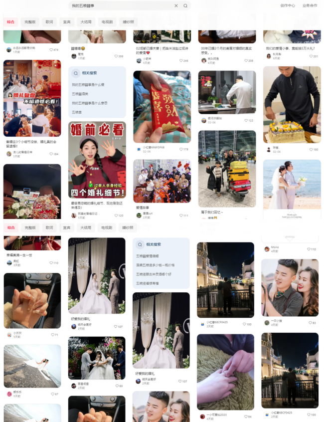 品牌发布期间,五粮囍发起#我的五粮囍事#婚恋故事征集活动,向全网发出邀约,鼓励大众分享自己温暖真实的爱情与婚姻故事,传递积极正向、相守相伴的婚恋价值观,用平凡岁月里的真挚爱意,凝聚起全社会对美好婚恋的共同向往。活动一经推出,便引发广泛社会关注与情感共鸣,数十万次的浏览与近万条互动讨论,共同将话题打造成了温暖的文化符号,近千位用户的亲身参与,让无数关于“爱”的微光汇聚成星河,在互联网空间留下了深刻的情感印记。每一条分享都藏着最真挚的心意,这份自发的分享与真诚的共鸣,不仅让话题快速升温,更让五粮囍的品牌温度直抵人心,与消费者建立起深厚而牢固的情感链接,让“天长地久喝五粮囍酒”的美好祝愿,深深扎根在每一个向往幸福的人心中。